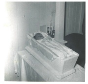 Il est né chez Antoine Roy, le 1 novembre 1955. Il est décédé le 9 novembre de la même année. J'avais une servante du nom de Laurette Couture. L'infirmière Audet était venue comme d'habitude pour m'aider. C'était dans l'avant-midi. Garde Audet était venue faire ma toilette car j'étais au lit, très faible. Le bébé est venu au monde dans l'avant-midi. Quelques jours plus tard, l'infirmière était en train de le laver sur la table. Le petit était tout nu et la servante a ouvert la porte donnant sur le hangar. L'air froid de novembre est venu sur le petit et il a attrapé une pleurésie. Il en est mort au bout de quelques jours.
